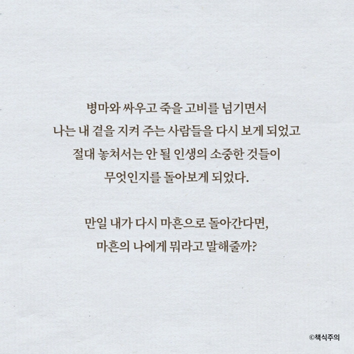 마지막으로, 이 책은 우리가 어떻게 하면 더 나은 삶을 살 수 있을지를 고민하게 만드는 작품이에요. 그래서 지금 어려운 시간을 보내고 있다면, 이 책을 읽어보는 걸 추천해요. 그럼 다음에 또 만나요!